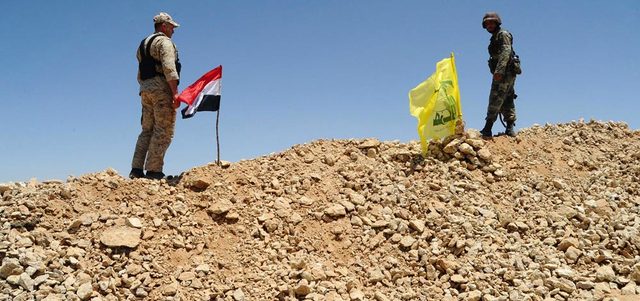 مقاتل من «حزب الله» اللبناني (يمين) وجندي سوري في أحد المواقع العسكرية في جبال القلمون بعد أن أحرز الجيش السوري تقدماً على المسلحين. إي.بي.إيه