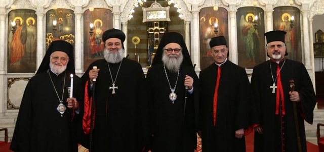 رؤساء الكنائس المشاركون في القمة الروحية بدمشق. أ.ف.ب