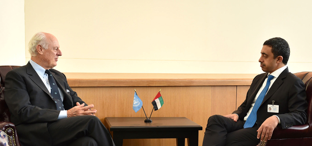 عبدالله بن زايد لدى لقائه دي ميستورا. وام