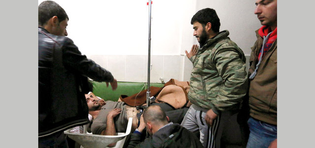 وفي ريف دمشق، قتل ثمانية أشخاص وأصيب 70 بعضهم بجروح خطرة، جراء قصف جوي روسي وسوري على مدن وبلدات دوما وعربين وعين ترما في الغوطة الشرقية.