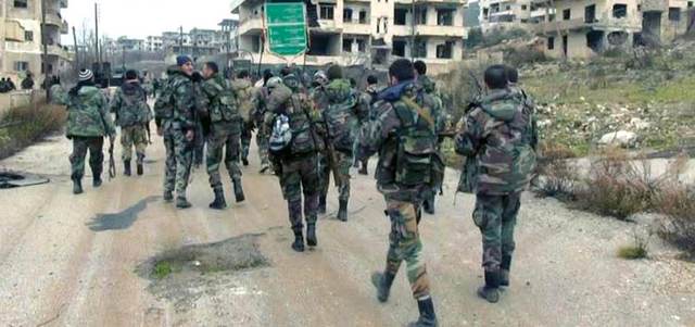 أفراد من الجيش السوري في بلدة سلمى باللاذقية. أ.ب