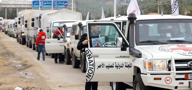قوافل إغاثة أرسلتها الأمم المتحدة إلى مضايا. أ.ف.ب