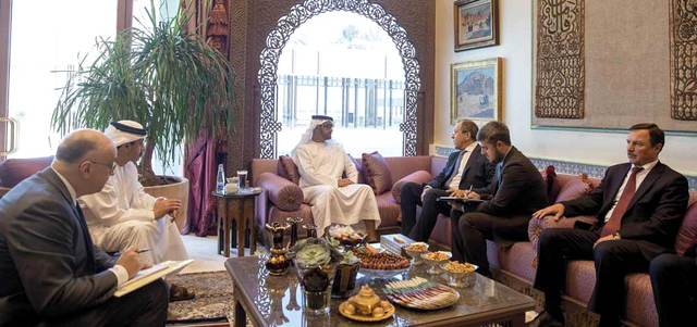 وتناول اللقاء، الذي حضره سمو الشيخ عبدالله بن زايد آل نهيان، عدداً من القضايا والمستجدات في المنطقة، وبشكل خاص سير عمليات التفاوض الجارية حالياً حول الأزمة السورية في جنيف، والمشاورات الدولية للدفع بهذه المفاوضات إلى الأمام، وبما يحقق أمن واستقرار ووحدة الأراضي السورية، وينهي مأساة الشعب السوري.