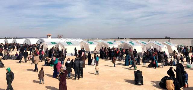 مخيم مؤقت للنازحين السوريين في منطقة إعزاز بريف حلب بانتظار السماح لهم بالدخول إلى تركيا. أ.ب