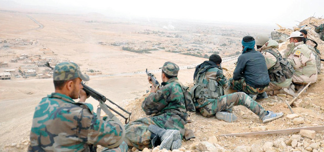 عناصر من جيش النظام السوري يتموقعون في تدمر. أ.ب