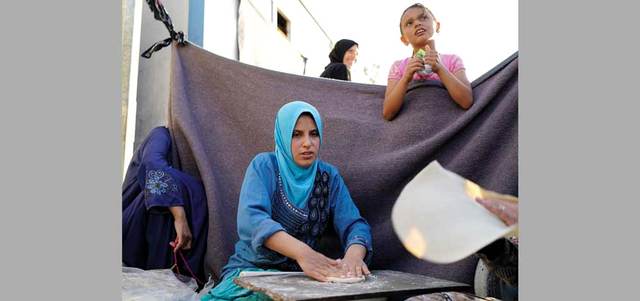 لاجئة سورية تخبز في اليوم الأول من شهر رمضان المبارك بمخيم حران للاجئين بمحافظة سانليورفا التركية. رويترز