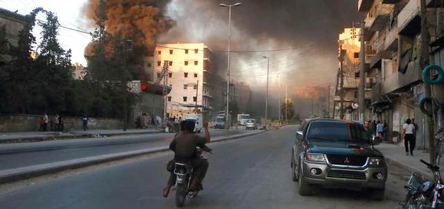 الدخان يتصاعد فوق أحد مناطق حلب نتيجة قصف من قبل النظام. أ.ف.ب