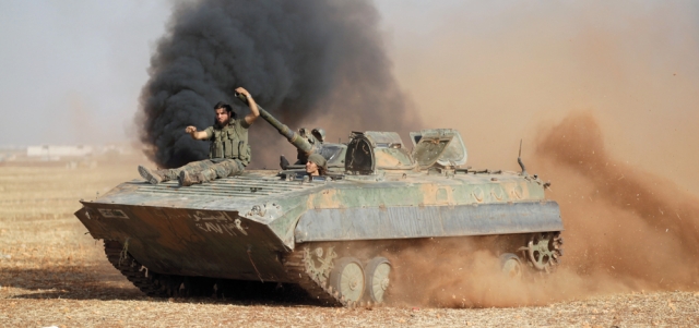 آلية عسكرية لقوات سورية الديمقراطية في محافظة حلب. رويترز