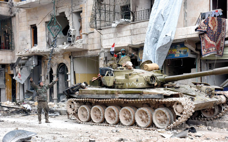 عناصر من قوات النظام في حي السكري بحلب. إي.بي.إيه