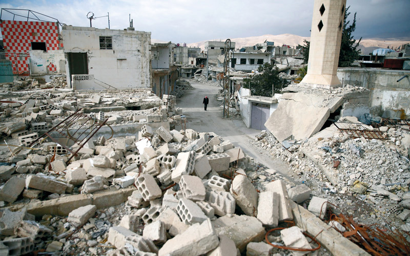 سوري يمرّ وسط الدمار في بلدة دوما نتيجة قصف النظام. رويتر