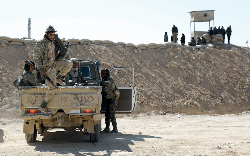 مقاتلون من «قوات سورية الديمقراطية» شمال محافظة دير الزور. رويترز