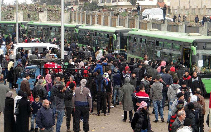 ويأتي بدء خروج الدفعة الأولى من المقاتلين وعائلاتهم بموجب اتفاق أعلنت الحكومة السورية والفصائل المعارضة التوصل إليه برعاية روسية الثلاثاء الماضي، ويقضي بخروج الآلاف من الحي على دفعات عدة خلال فترة أقصاها شهران.