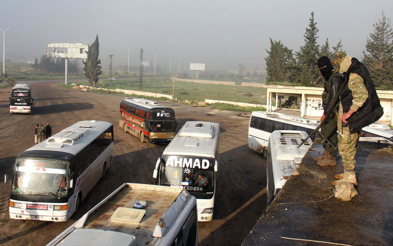 وتم صباح أمس إجلاء آلاف المدنيين والمقاتلين على مراحل، من بلدتي الفوعة وكفريا الشيعيتين المحاصرتين من الفصائل المقاتلة في إدلب (شمال غرب)، ومن الزبداني ومضايا المحاصرتين من قوات النظام في ريف دمشق، بموجب اتفاق بين الحكومة والفصائل المقاتلة برعاية إيران، أبرز حلفاء دمشق، وقطر الداعمة للمعارضة.
