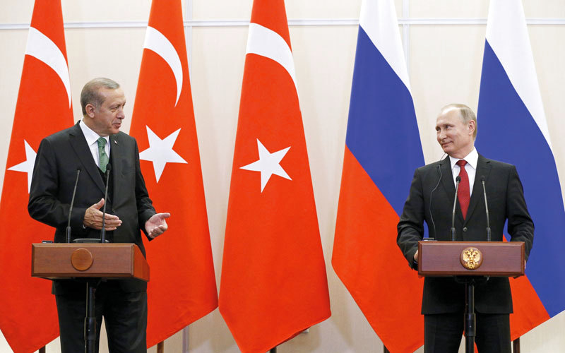 بوتين وأردوغان خلال مؤتمر صحافي عقب محادثات حول سورية في سوتشي. أ.ب