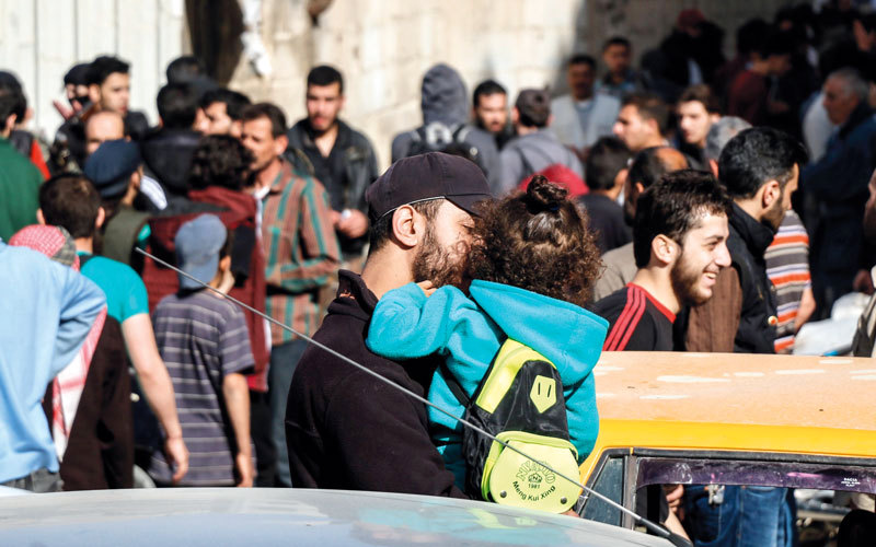 أكد وزير الخارجية السوري وليد المعلم، أمس، رفض بلاده أي دور للأمم المتحدة في مراقبة مناطق «تخفيف التصعيد» في سورية. في وقت خرج مئات المقاتلين المعارضين والمدنيين، أمس، من حي برزة الواقع في شمال دمشق، في أول عملية إجلاء للفصائل المعارضة من العاصمة السورية منذ اندلاع النزاع قبل أكثر من ستة أعوام.