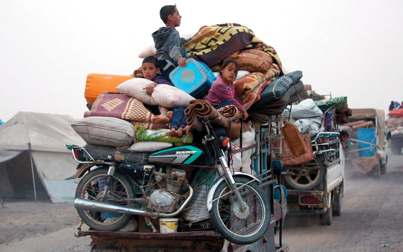مدنيون فارّون من ريف الرقة إلى معسكر مؤقت في قرية عين عيسى. أ.ف.ب