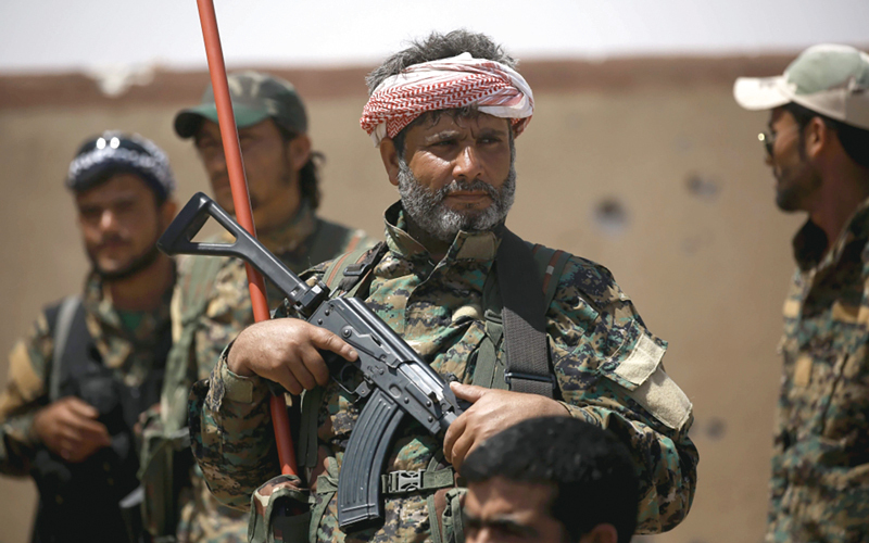 قوات سورية الديمقراطية في قرية الحزيمة شمال الرقة. أ.ف.ب