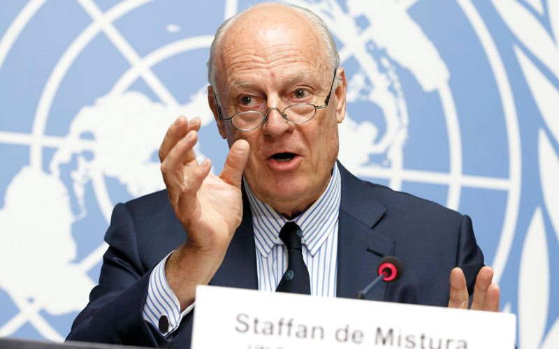 دي ميستورا خلال مؤتمر صحافي في جنيف. أ.ب