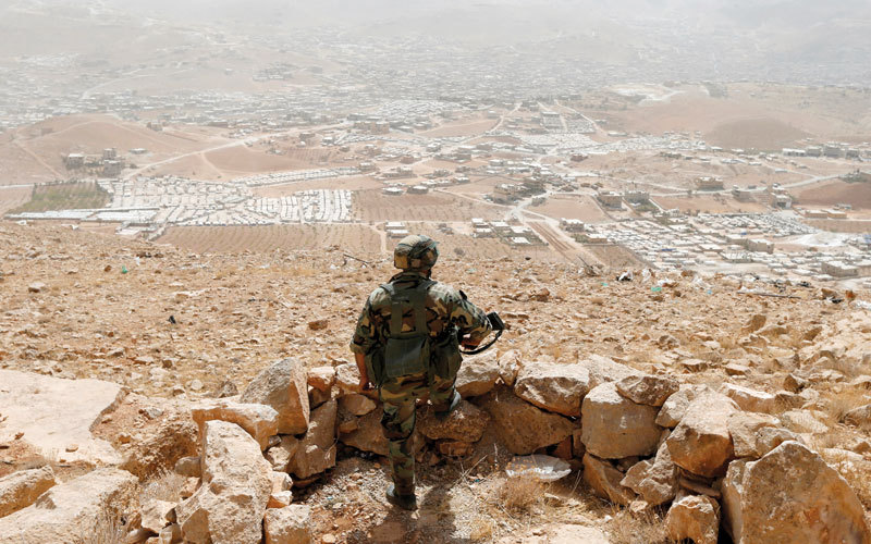 جندي لبناني يقف على مشارف بلدة عرسال عند الحدود السورية. أرشيفية - رويترز