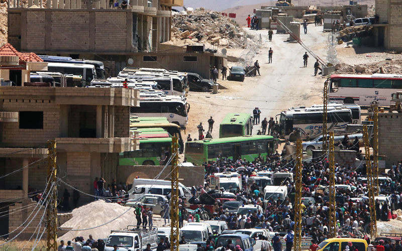 مسلحون وآلاف المدنيين يبدأون مغادرة عرسال إلى سورية