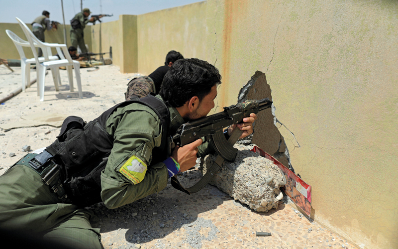 عناصر من قوات سورية الديمقراطية خلال اشتباكات مع «داعش» في الرقة. رويترز
