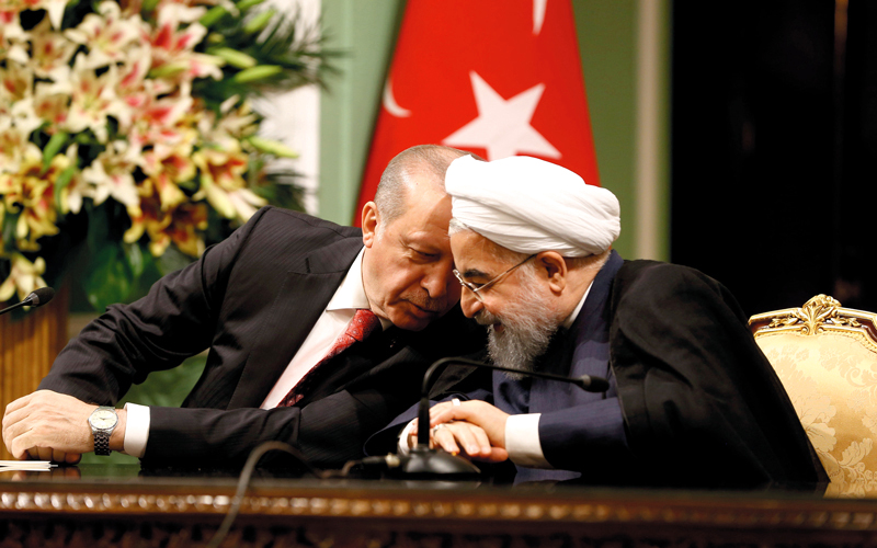 روحاني وأردوغان خلال لقائهما في طهران. أ.ف.ب