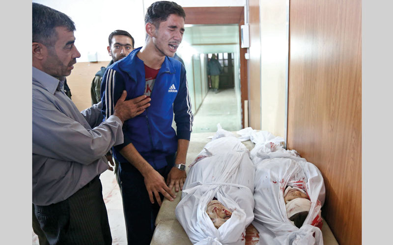 قوات النظام أطلقت قذيفة أمام مدخل مدرسة في مدينة جسرين أسفرت عن مقتل أطفال. أ.ف.ب