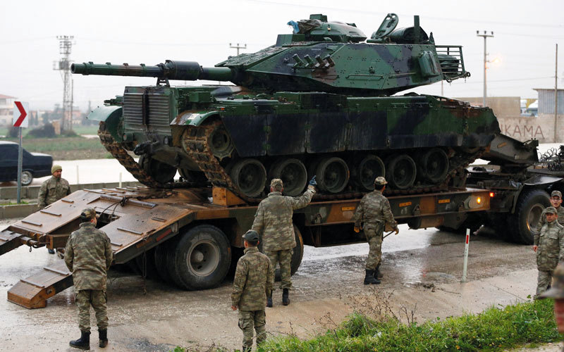 دبابات تركية تصل إلى قاعدة عسكرية قرب الحدود مع سورية. رويترز