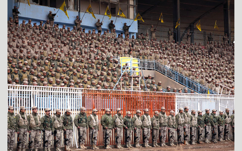 مقاتلون من قوات الدفاع عن النفس التي يقودها الأكراد خلال تجمع في الحسكة عقب إعلان النفير العام. رويترز