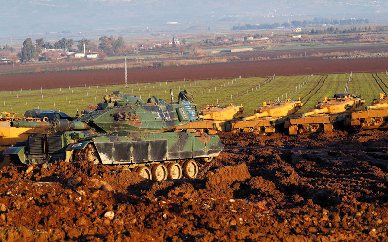 دبابات تركية في محافظة هاتاي بالقرب من الحدود السورية. رويترز