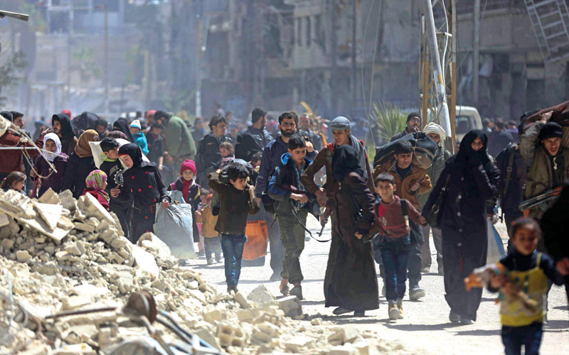 وقدرت دمشق عدد الذين غادروا من بلدات ومدن الغوطة الشرقية منذ نحو أسبوعين بأكثر من 107 آلاف مدني، عبر «الممرات الآمنة» التي حددتها الحكومة السورية. وغالباً ما يتم نقلهم إلى مراكز إيواء حكومية في ريف دمشق، تكتظ بالمدنيين.