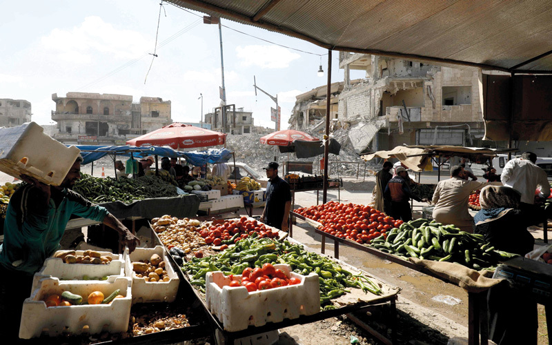 سوريون يشترون الخضر من سوق الرقة. أ.ف.ب