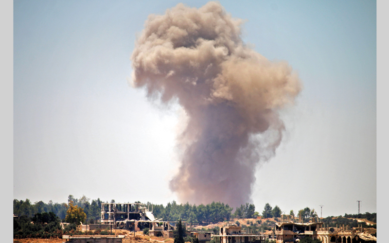 الدخان يرتفع من منطقة تسيطر عليها المعارضة في درعا عقب غارات شنتها قوات النظام. أ.ف.ب
