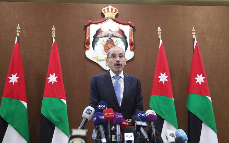 الصفدي خلال مؤتمر صحافي في عمان. إي.بي.إيه