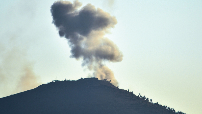 تصاعد الدخان من تلة تطلُّ على بلدة الحارة جنوب شرق محافظة القنيطرة بعد غارات سورية وروسية. أ.ف.ب