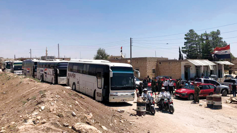 يأتي ذلك في وقت وصلت فيه أكثر من 100 حافلة، أمس، لإجلاء الآلاف من بلدتين مواليتين للحكومة السورية، يحاصرهما مقاتلو المعارضة في شمال غرب البلاد، حيث قال قائد في التحالف الإقليمي الداعم للرئيس بشار الأسد، لـ«رويترز»، إنه سيتم إخلاء بلدتي الفوعة وكفريا الشيعيتين من جميع السكان والمقاتلين.