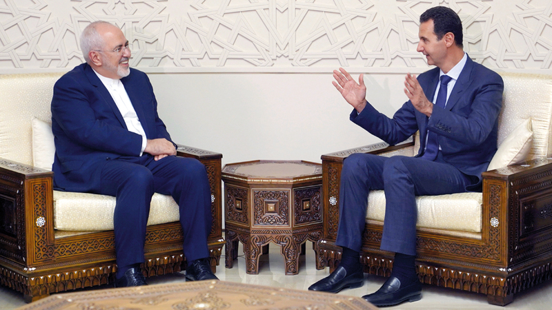 ظريف أكد خلال لقائه الأسد أنه يجب تطهير إدلب من المسلحين وفرض سيطرة الدولة عليها. أ.ب