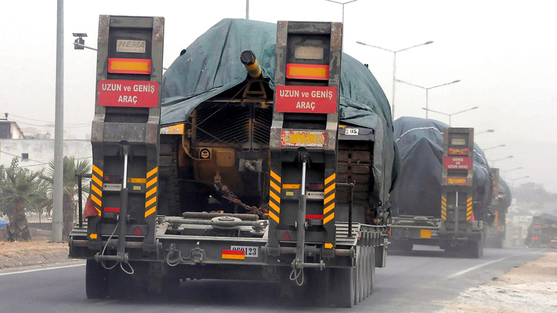 القوات التركية ترسل تعزيزات عسكرية يومية إلى الحدود السورية التركية ونقاط المراقبة التركية. أ.ب
