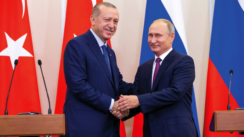 لقاء بوتين وأردوغان أقر إقامة منطقة منزوعة السلاح بعمق 15 – 20 كلم على امتداد خط التماس بين المعارضة المسلحة والقوات الحكومية. أ.ب