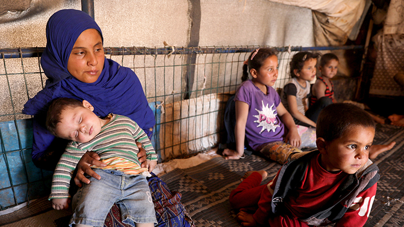 أطفال إحدى الأسر النازحة في شمال سورية. رويترز