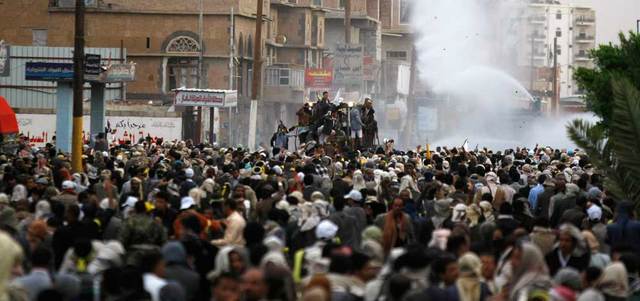 جانب من فضّ قوات مكافحة الشغب اليمنية لاحتجاجات الحوثيين. أ.ف.ب