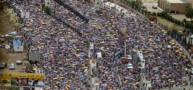 حشود يمنية في صنعاء تأكيداً للرغبة في الأمن والسلام. رويترز