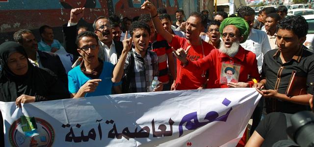 يمنيون خلال تظاهرة في صنعاء تطالب بخروج المسلحين الحوثيين. أ.ف.ب