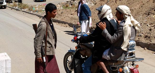 مسلح من جماعة الحوثي في إحدى نقاط التفتيش بصنعاء. أ.ف.ب