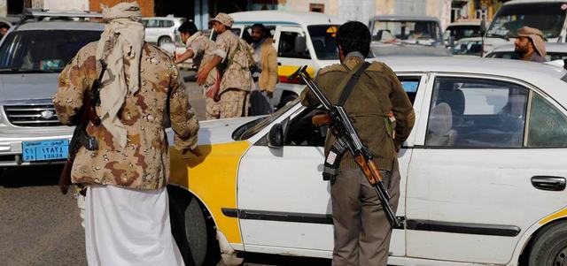عناصر من جماعة الحوثي عند نقطة تفتيش بصنعاء. رويترز