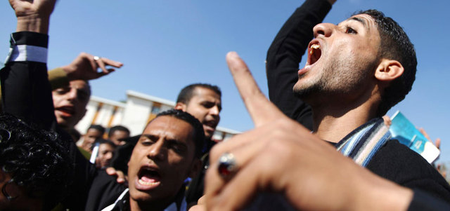 نظم المئات من طلاب جامعة صنعاء باليمن أمس، تظاهرة للمطالبة بخروج المسلحين الحوثيين من الحرم الجامعي. ورفع المشاركون في التظاهرة التي انطلقت من أمام بوابة الجامعة في حي الدائري وجابت كل الكليات التابعة لها شعارات ولافتات تطالب بخروج المسلحين الحوثيين من الحرم الجامعي، وإبقاء الحراسات المدنية عبر التعاقد مع شركات خاصة، مؤكدين أن الجامعة تُعد صرحاً للتعليم وليست مكاناً للميليشيات المسلحة وتصفية الحسابات على حساب مستقبل الطلاب وأحلامهم.