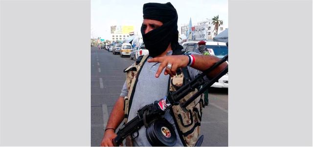 مسلح يمني مؤيد للانفصاليين يقف عند نقطة تفتيش في عدن. إي.بي.إيه