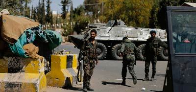 قوات الشرطة تحرس السفارة الأميركية في صنعاء عقب إغلاقها أمس. رويترز