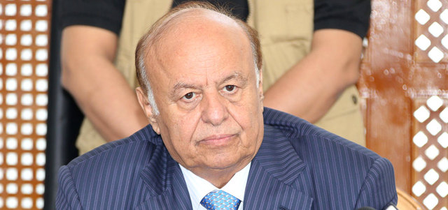 الرئيس اليمني خلال مؤتمر صحافي في عدن أمس. أ.ف.ب