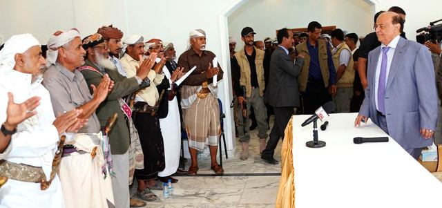 الرئيس اليمني عبدربه هادي يستقبل زعماء قبائل جنوبية أمس. رويترز